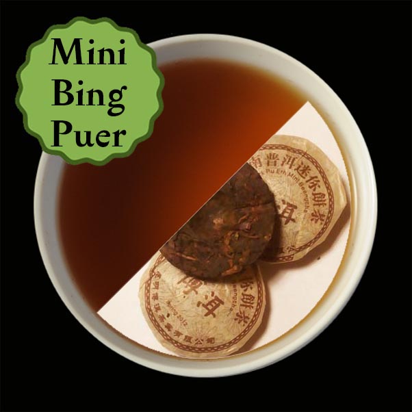 „Puerové mini-koláčky“ – výběrový puer typu „shou“, lisovaný do malých koláčků. Porce 8–9 g, vhodná na jednu konvičku, po snadném rozpůlení pak i na gaiwan.